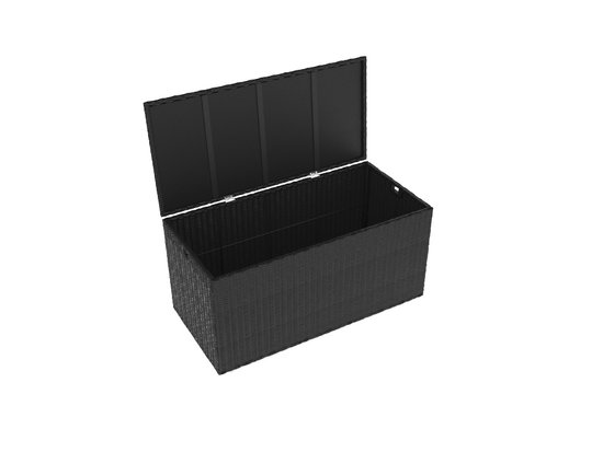 - Bitte beachten Sie, dass unsere Auflagenbox konstruktionsbedingt keine 100%ige Wasserabweisung garantieren kann. Die Box ist spritzwasserfest. Wir empfehlen die Box in jedem Fall überdacht aufzustellen oder den mitgelieferten Wetterschutz zu verwenden, um diese nicht ungeschützt den Wetterbedingungen auszusetzen.