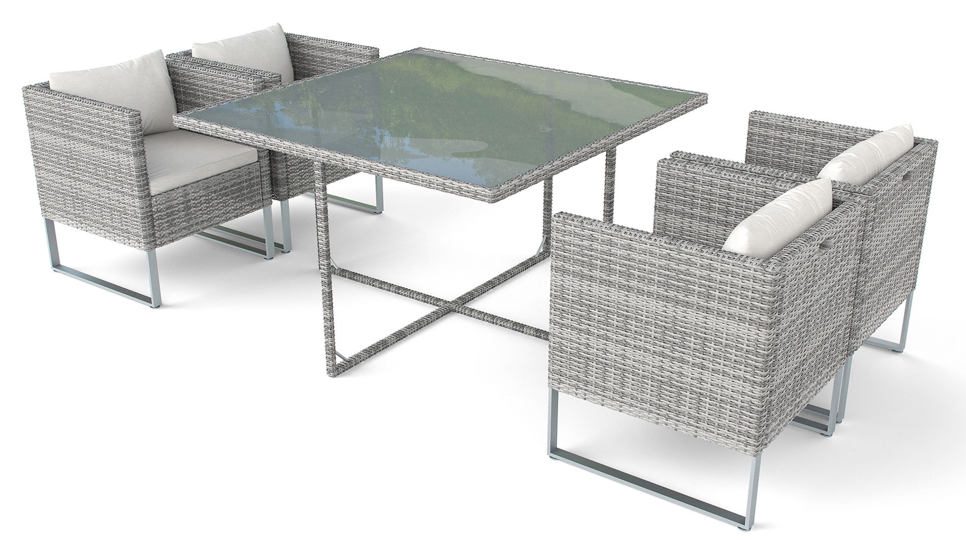 El elegante conjunto tiene una estructura de aluminio resistente, el mimbre de poliratán es de color degradado. La particularidad de este conjunto es que ocupa muy poco espacio. Si no se necesitan las sillas, se pueden meter debajo de la mesa para ahorrar espacio. De este modo, se dispone de más espacio en la terraza, que se puede utilizar para otros fines. Por ello, el elegante modelo de la Colección City tiene todas las ventajas a su favor.