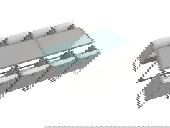 El conjunto de comedor Roma L se adapta con estilo y elegancia a su zona de exterior. El grupo de la colección City está formado por una mesa con tableros de cristal esmerilado y ocho sillones con cómodos reposabrazos y aberturas para asas en la zona del respaldo. Los cómodos cojines del asiento y del respaldo garantizan una agradable sensación de asiento. Con estos elegantes muebles de exterior de poliratán, podrá disfrutar realmente de la época más bonita del año y desayunar, comer y cenar a cielo abierto.