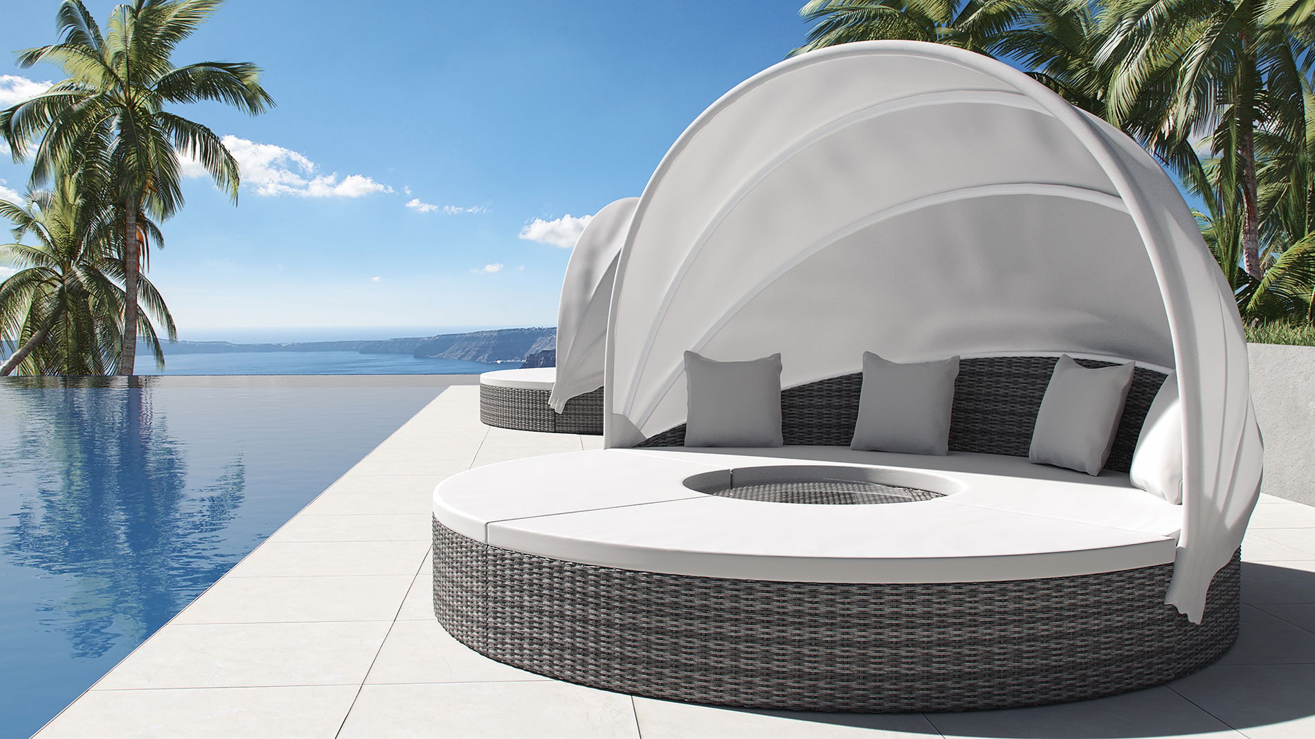 Nuestros materiales, superficies y tejidos son de la más alta calidad y perfectos para uso en exteriores. Los hemos seleccionado y adaptado cuidadosamente para que funcionen armoniosamente entre sí y completen así el conjunto.