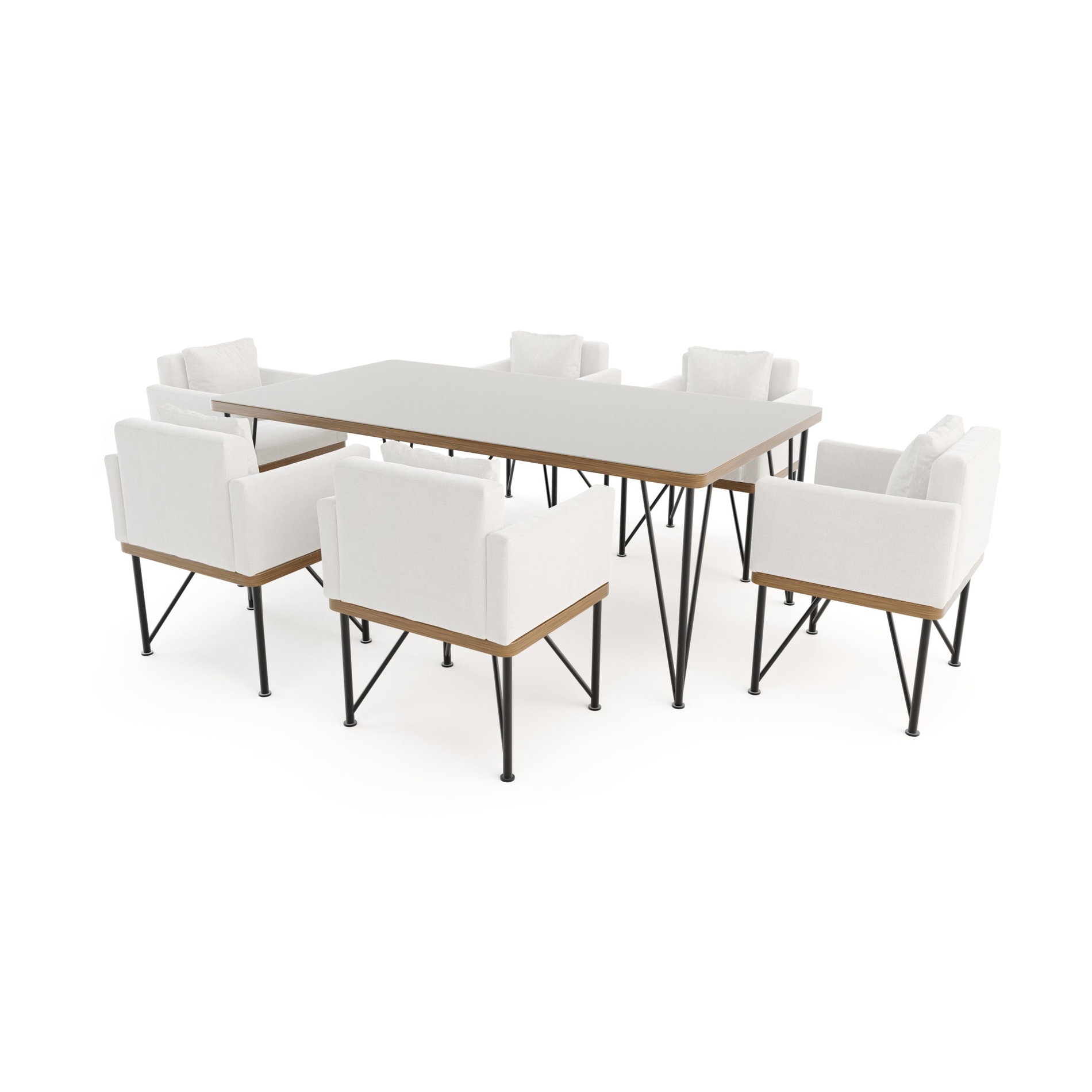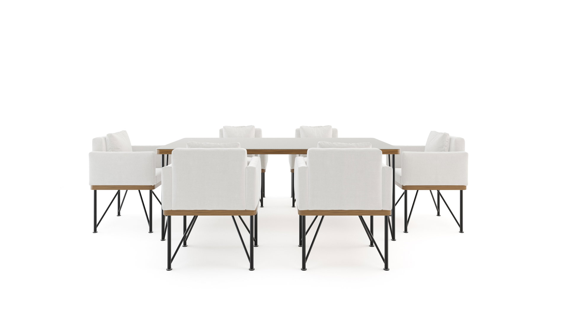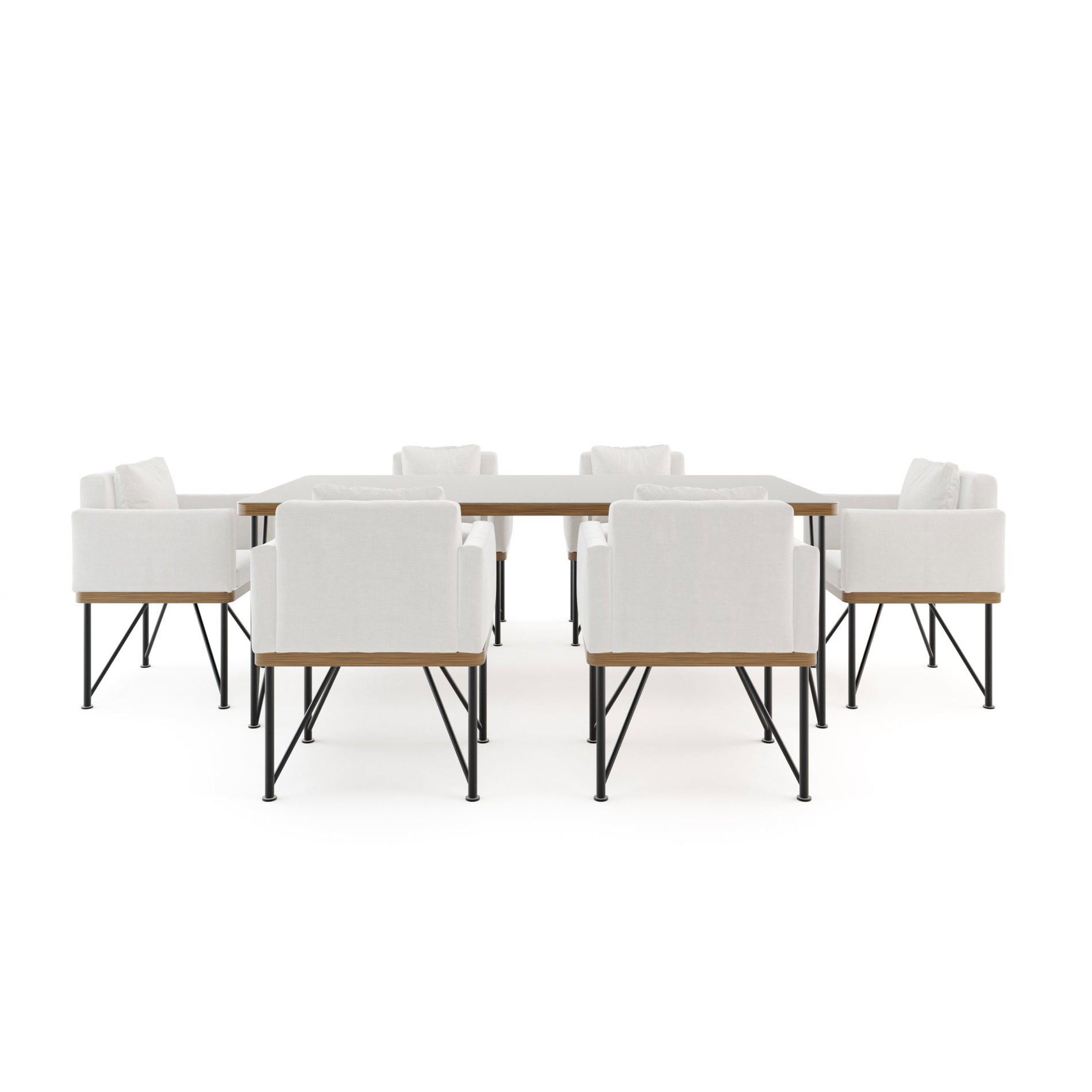 Experimenta la elegancia atemporal y el lujo natural con el conjunto de comedor Córdoba L. El aluminio resistente a la intemperie con aspecto de madera, los tejidos de alta calidad y el diseño sofisticado crean el entorno perfecto para tus cenas al aire libre.