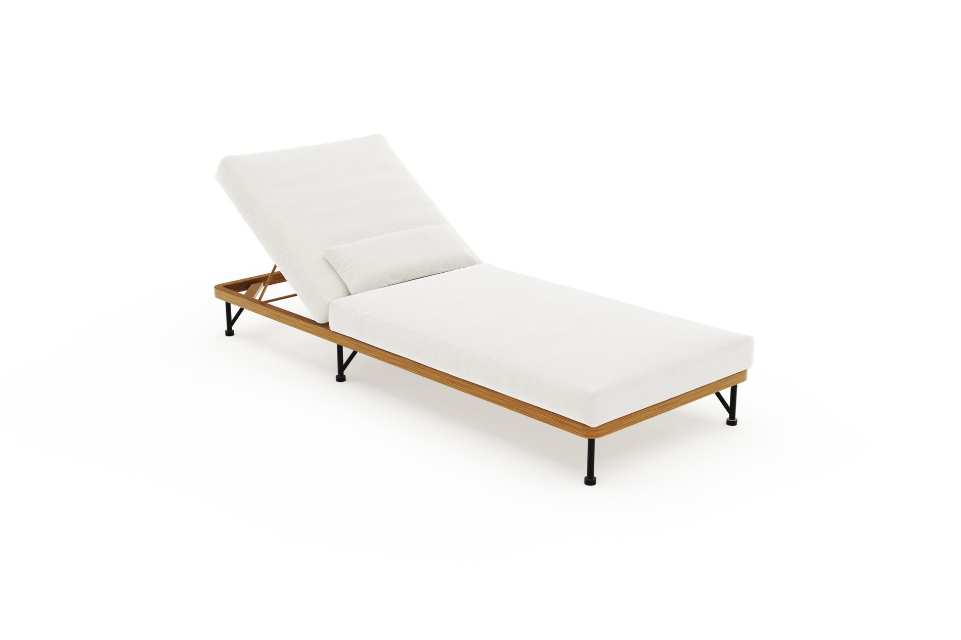 La tumbona Córdoba combina un diseño elegante con el máximo confort: un armazón de aluminio con aspecto de madera, una funda Quick-Dry de color crema y un respaldo ajustable garantizan una relajación de lujo en tu jardín.