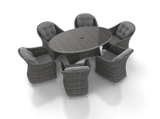 - 1x Mesa con cristal templado / Provisto de un orificio para introducir una sombrilla