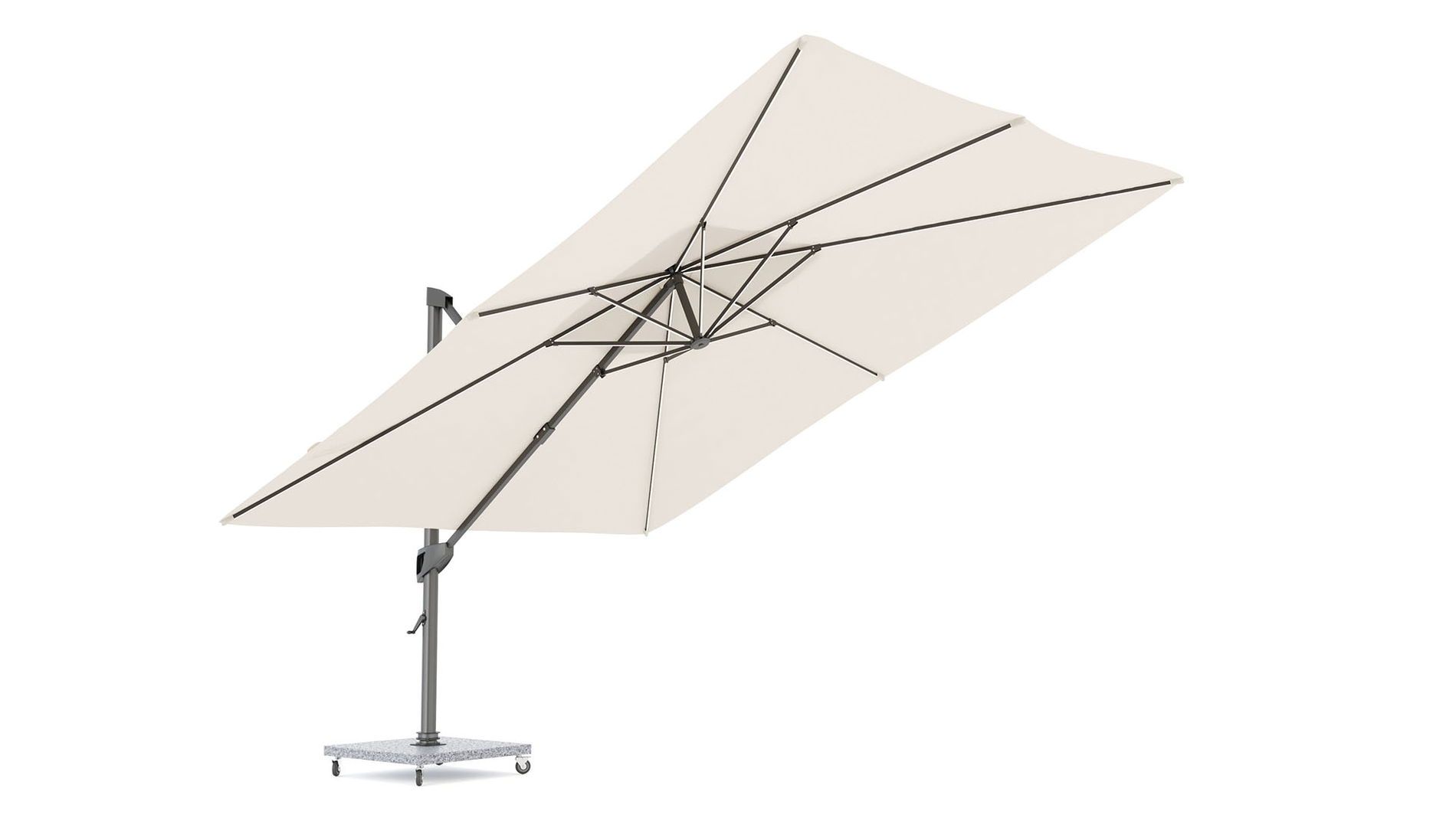 Veracruz ofrece comodidad adicional con una base de aleación de aluminio giratoria 360° y está equipada con luces LED de color blanco cálido que crean un ambiente agradable. La base de la sombrilla viene con un pedestal de granito pulido de 100 kg, equipada con ruedas de acero inoxidable que permiten un fácil manejo.