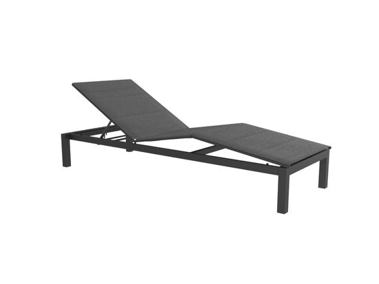 La tumbona de la línea Modern tiene un robusto marco de aluminio de color antracita. La superficie reclinable de Textilene, resistente al desgarro, está provista de espuma de secado rápido y presenta también una coloración gris. El innovador tejido de fibra sintética recubierta de PVC es absolutamente fácil de limpiar y también resiste la radiación UV habitual. La suciedad puede eliminarse con un paño húmedo. Con este exclusivo modelo, el aspecto y la funcionalidad van de la mano.